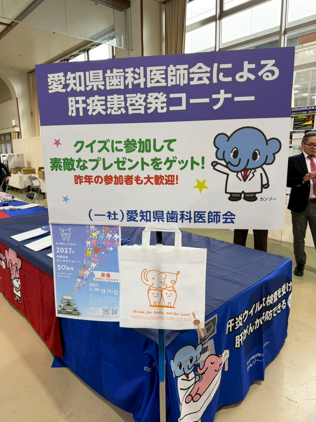 東海地区で年に1度行われる歯科に関する講演会と見本市のようなイベントです。私は、社会に肝疾患の啓発を行うためにブースでお手伝いさせていただきました。